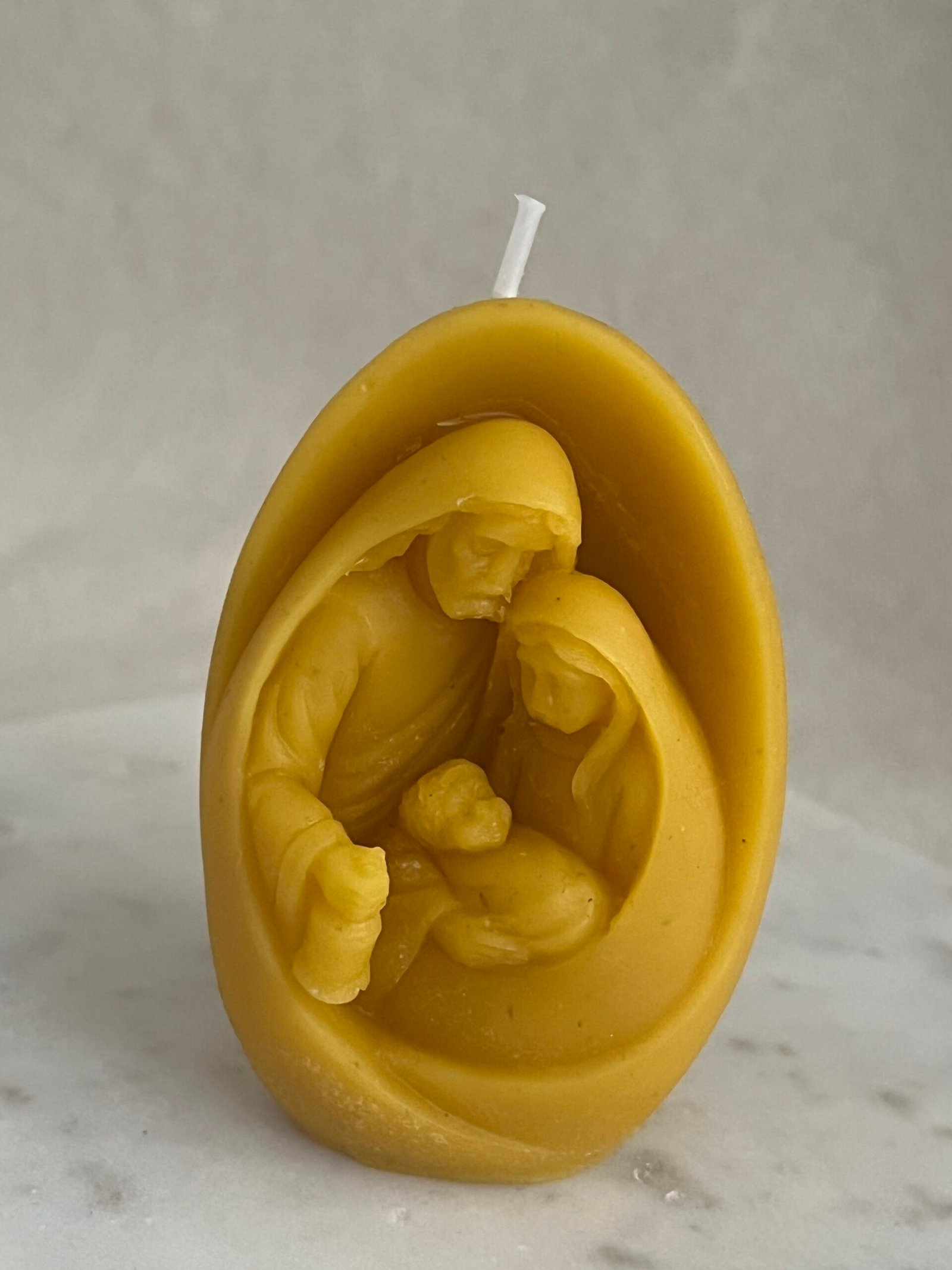 Celebrate the true spirit of Christmas with this beautifully handcrafted Nativity Beeswax Candle. Expertly molded from 100% pure beeswax, it features an intricate depiction of the Holy Family, radiating peace, love, and the gentle glow of the season.