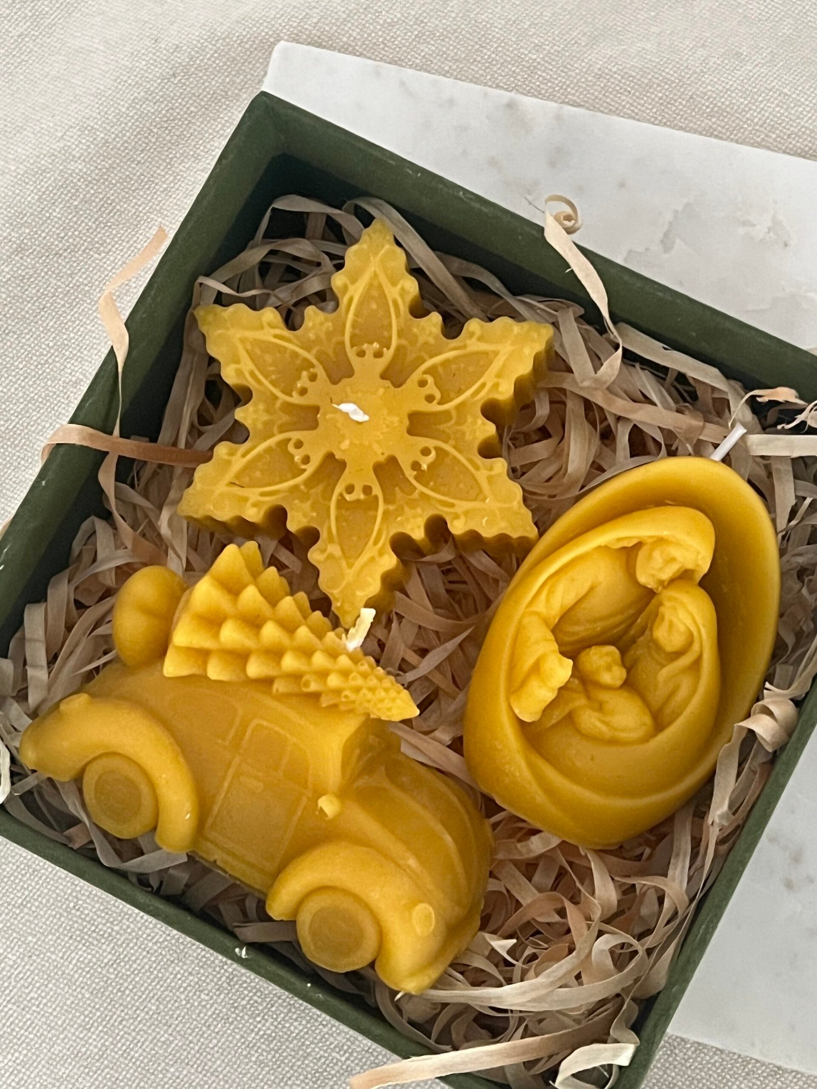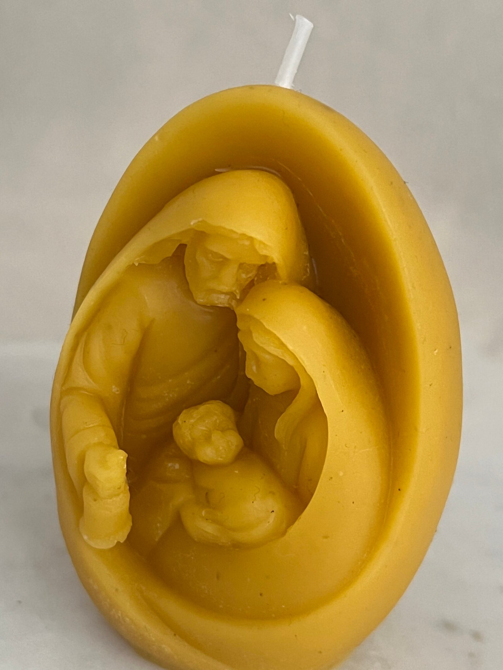 The natural golden hue of beeswax complements the detailed design, while its clean, slow burn releases a light honey aroma — filling your home with warmth and serenity. Perfect as a meaningful Christmas decoration, a spiritual gift, or a cherished keepsake for the holiday season.