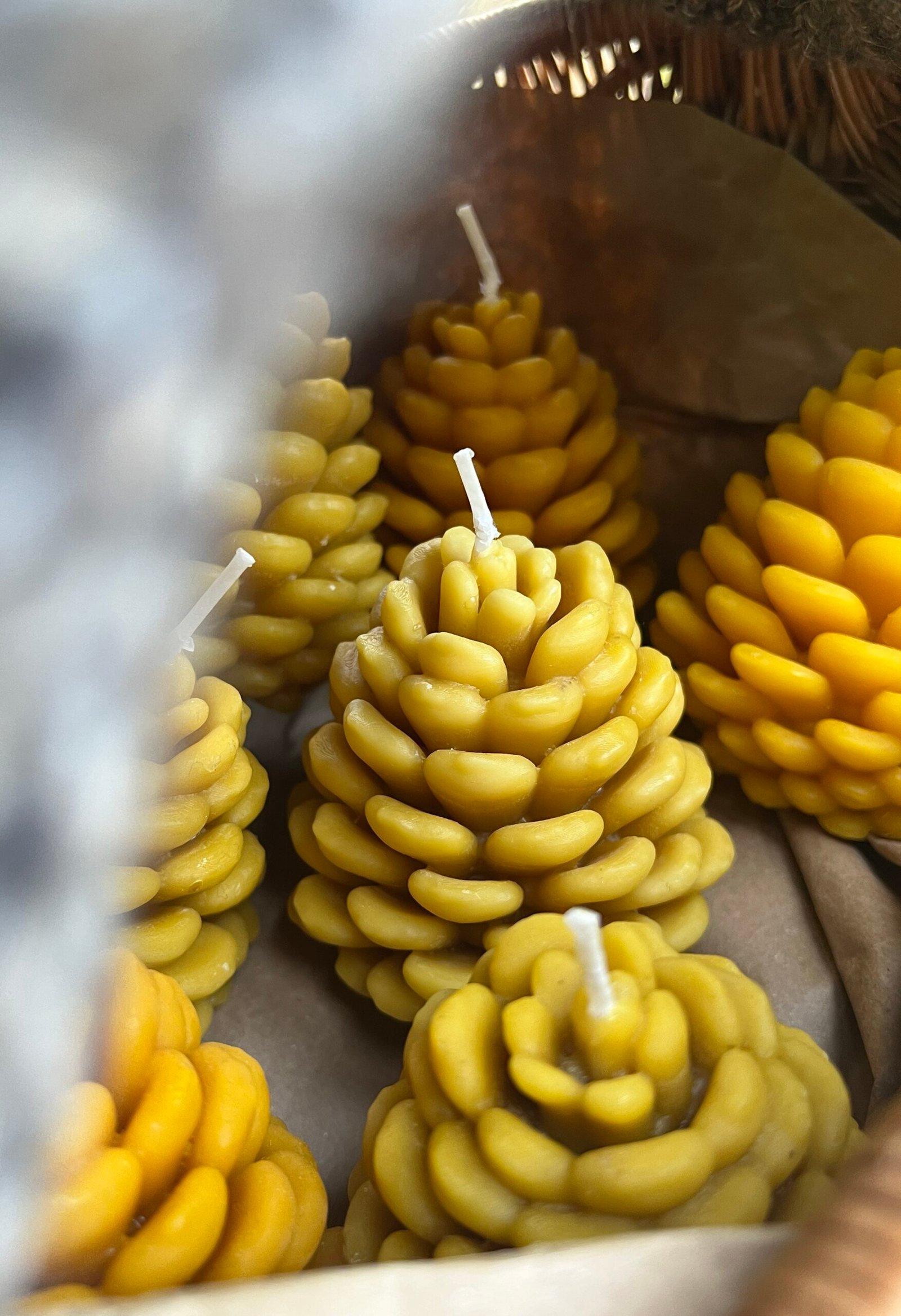 Natural Beeswax Realistic Pinecone Autumnal Design Candle