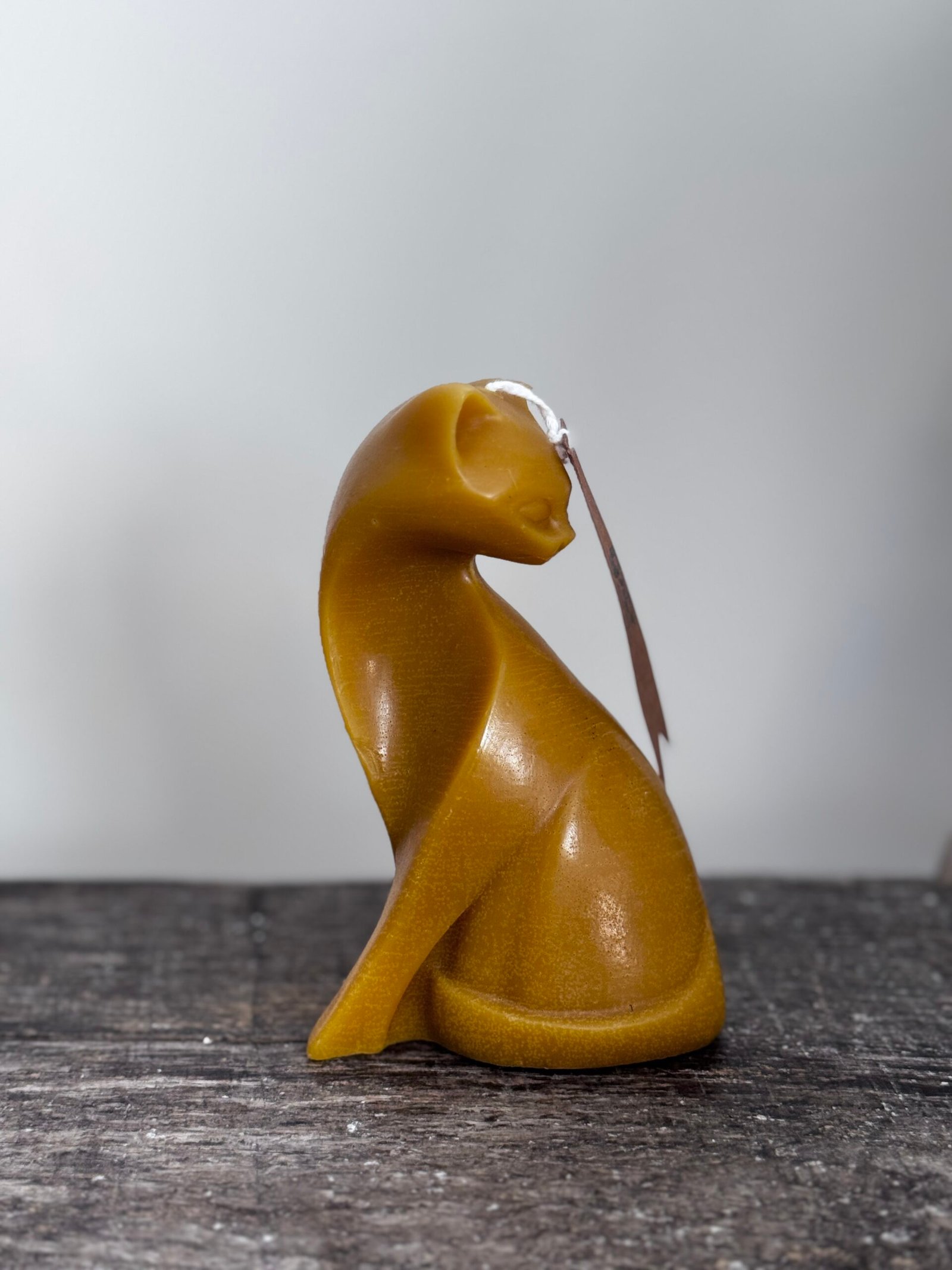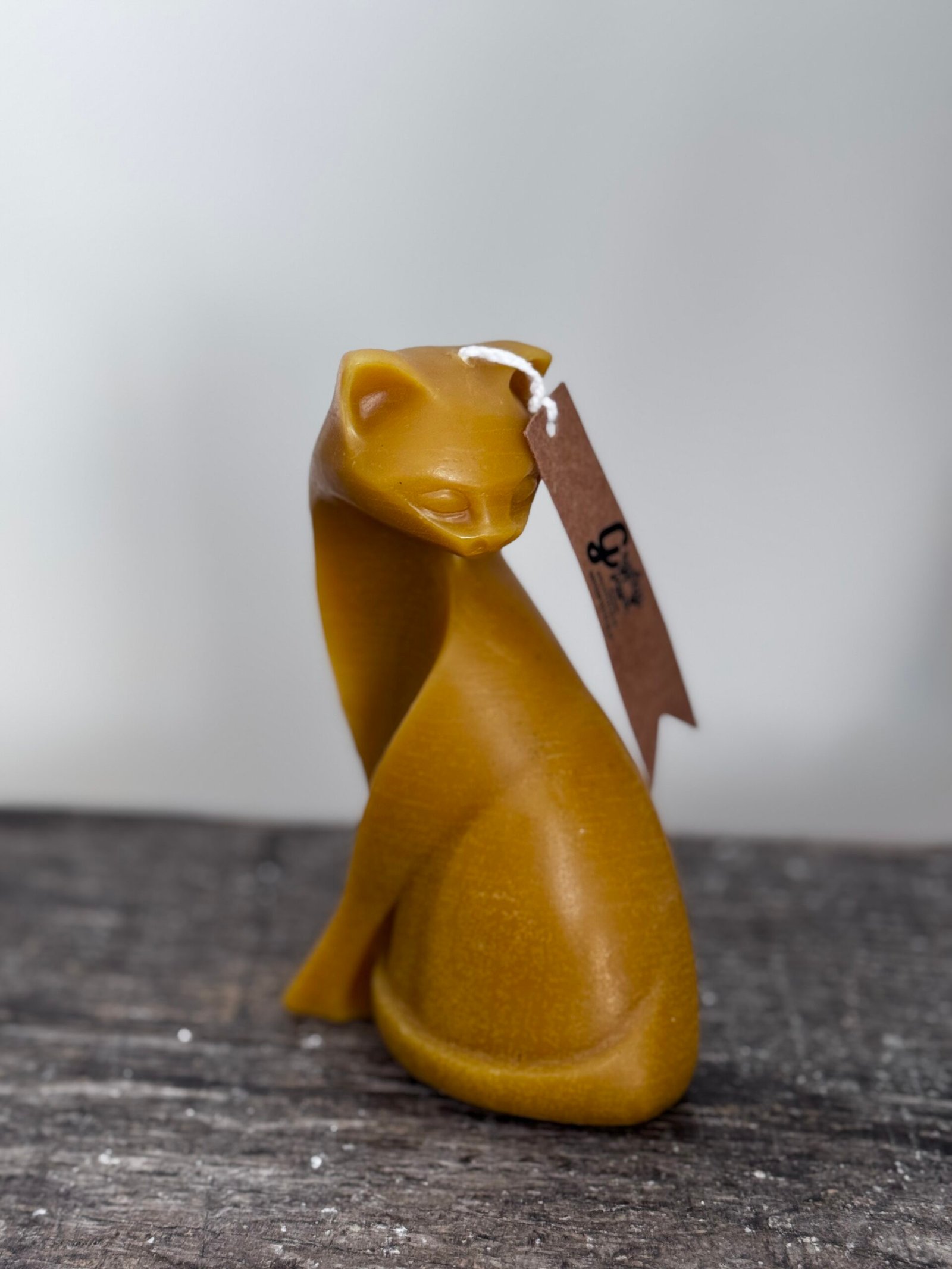 Graceful and understated, this handcrafted cat candle captures the quiet elegance and mystery of a resting feline. Made from pure beeswax, it radiates a warm golden glow and a subtle, natural honey scent that enhances any space with a sense of calm.