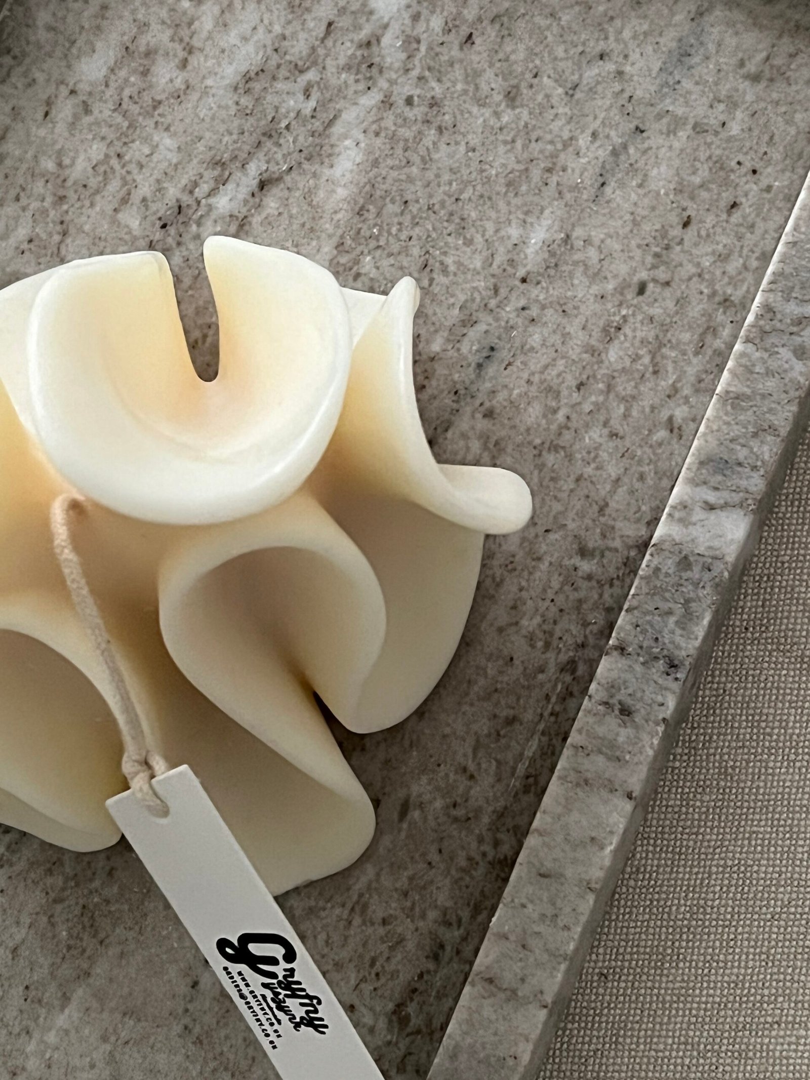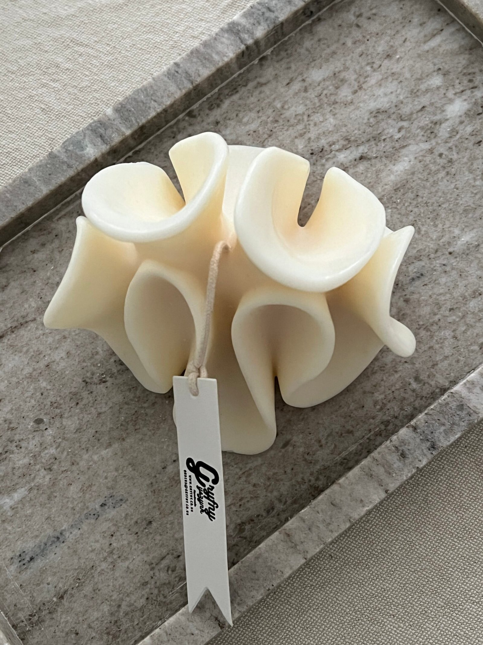 This elegant sculptural candle features soft, flowing curves that mimic natural, organic forms. Its creamy, matte finish enhances the smooth, wave-like folds, creating a minimalist yet artistic statement piece for any interior. Hand-poured and crafted with care, it serves beautifully as both décor and a functional candle. Perfect for styling coffee tables, shelves, or calming spaces that embrace a modern, serene aesthetic.