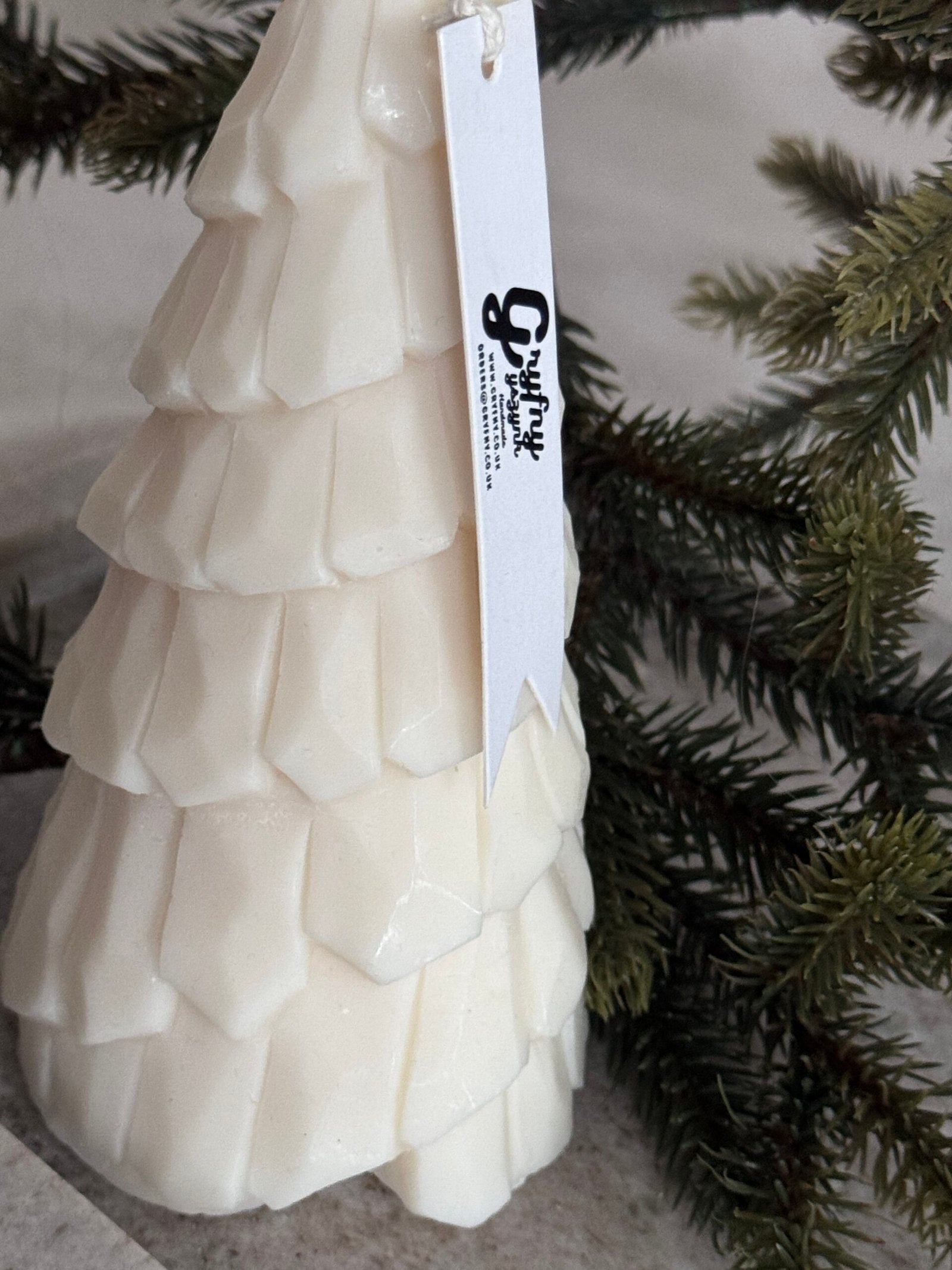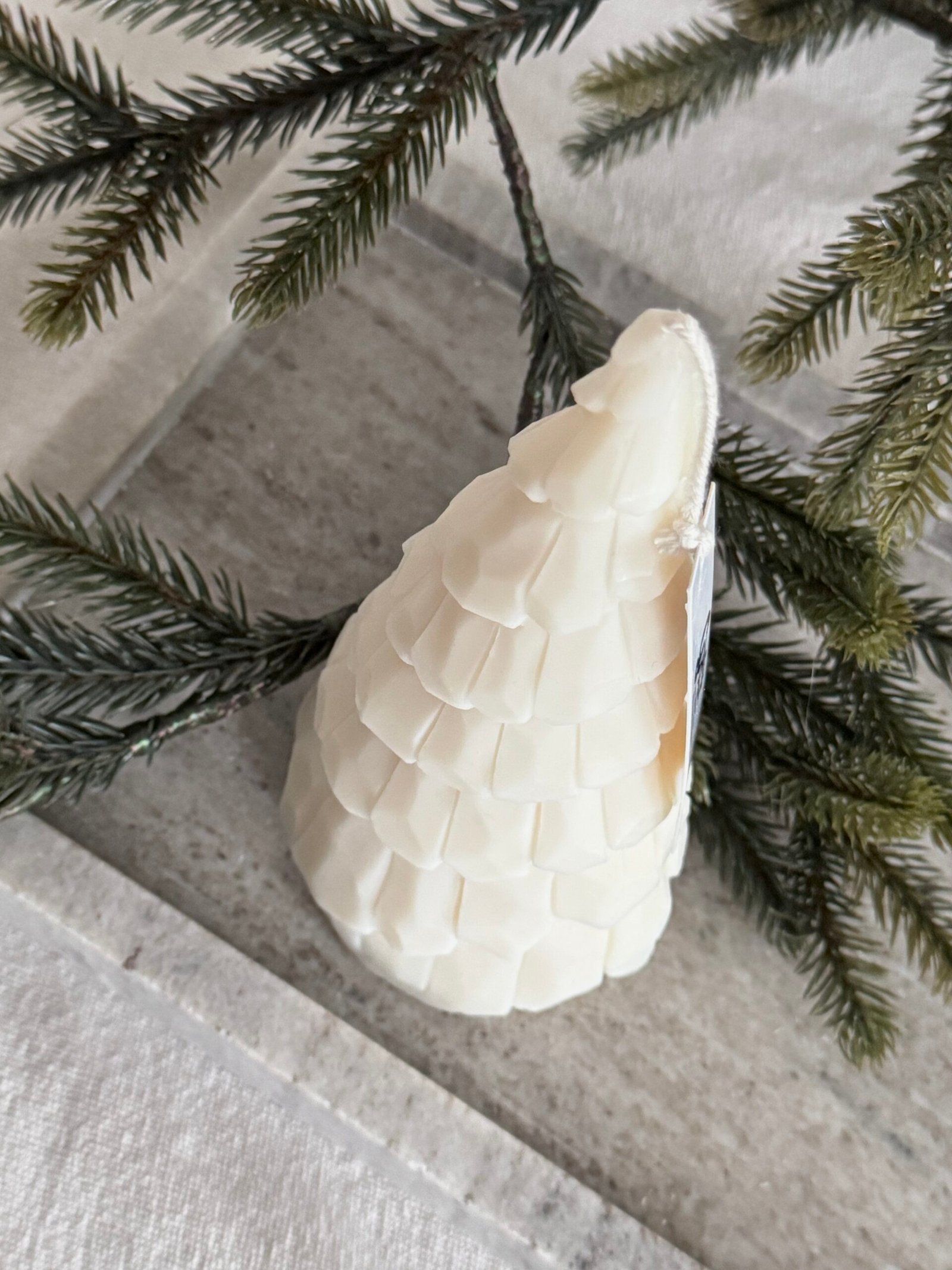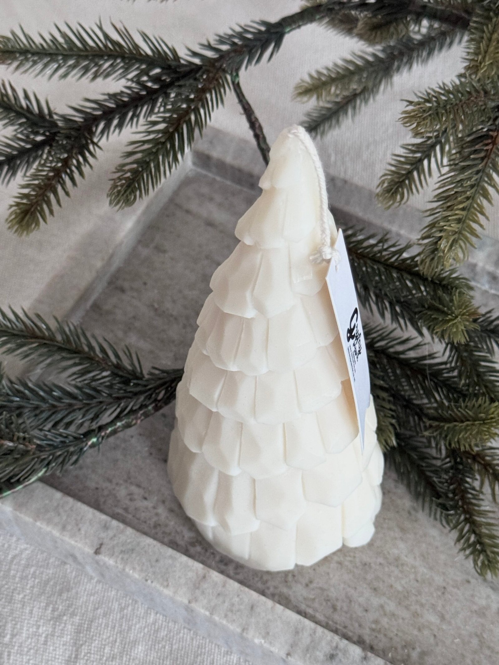A sculptural candle crafted from natural canola wax, inspired by the quiet beauty of winter. Shaped like a stylized evergreen, it features softly layered tiers that create depth and texture from every angle. Its warm ivory tone and clean, minimalist design make it perfect for seasonal décor, holiday tables, or cozy winter interiors. Beautiful both lit and unlit, this candle doubles as a decorative accent, bringing a sense of warmth, simplicity, and Nordic-inspired charm to any space.