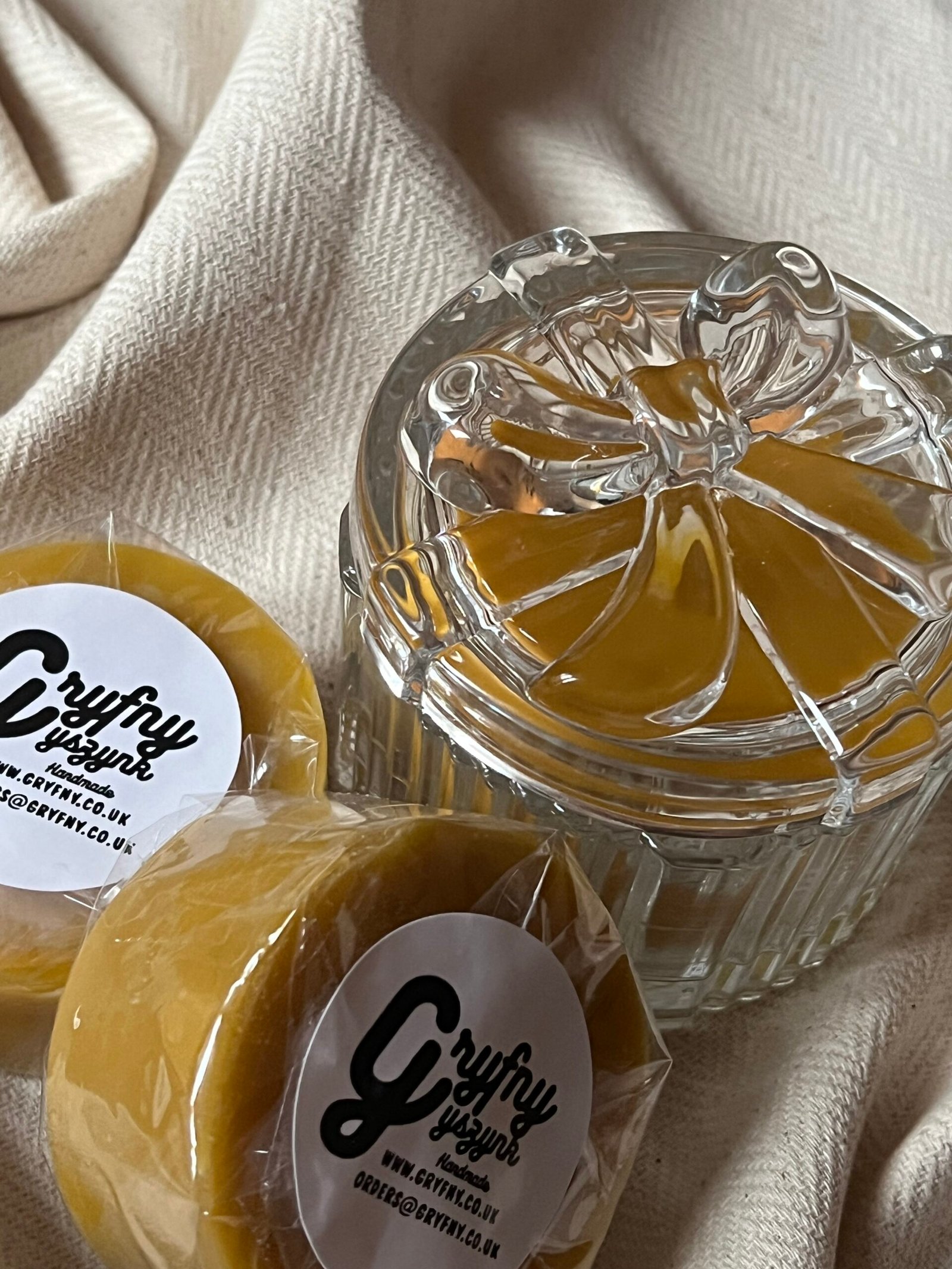 Once the candle has burned through, simply refresh it with our refillable beeswax pods available on our page — an eco-friendly way to enjoy your favourite candle again and again. The heavy glass design not only adds a touch of sophistication to your décor but also makes this piece a perfect keepsake or thoughtful gift.