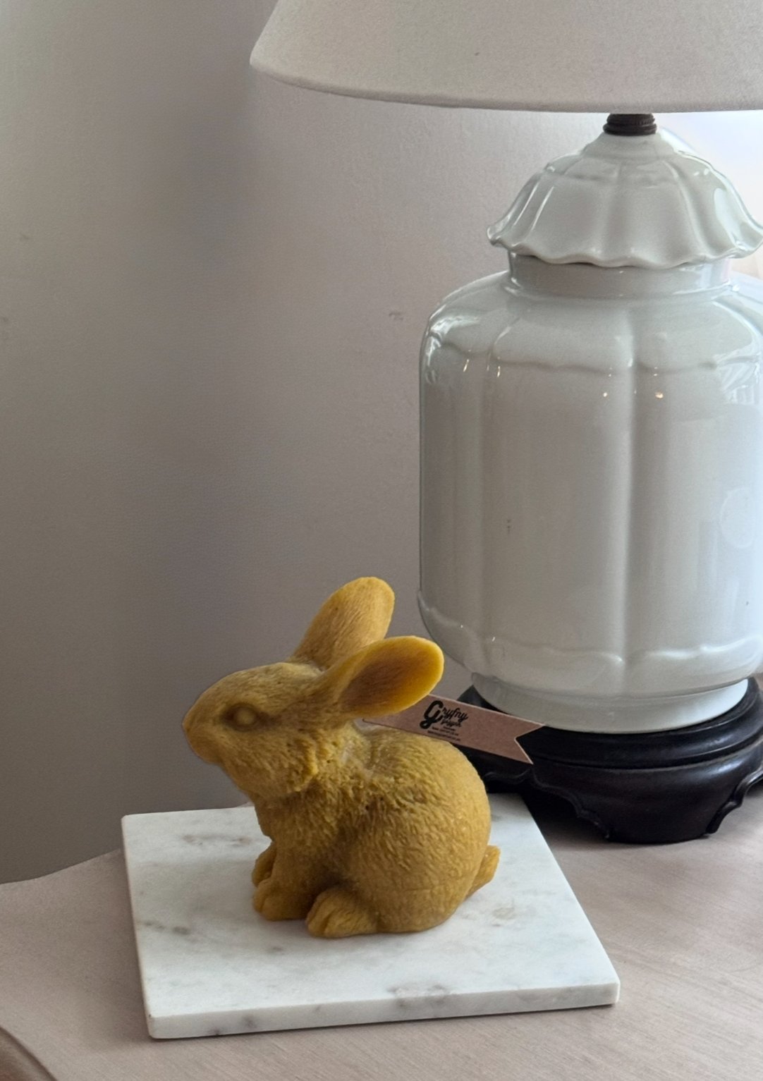 Perfect as a decorative accent, seasonal centerpiece, or thoughtful gift, this bunny brings a touch of whimsy and natural elegance to any space. Display it on a shelf, table, or mantel for a sculptural look, or light it to enjoy the subtle honey aroma and clean, slow burn beeswax is known for.
